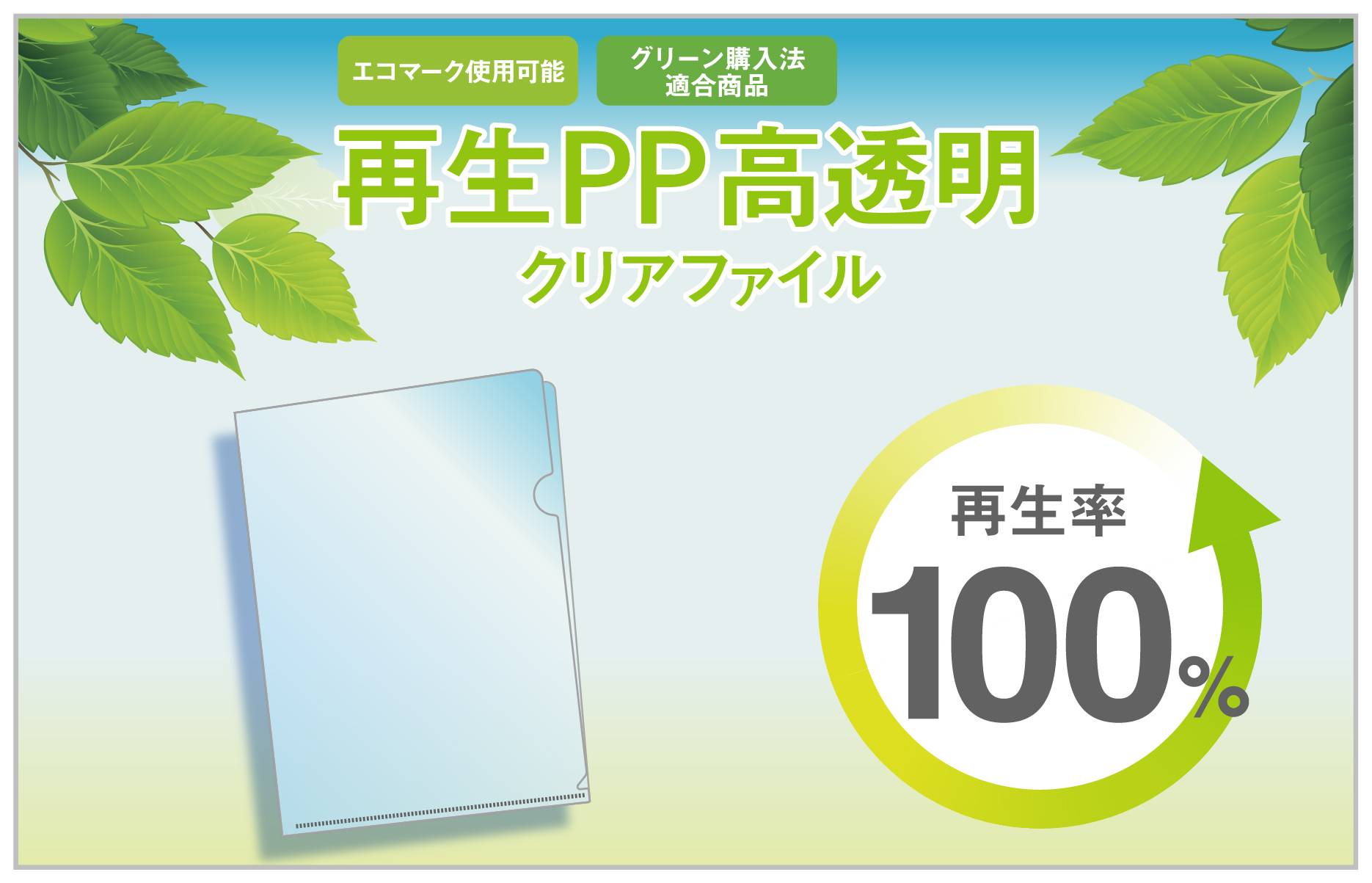 再生率100%の再生PPを使用した環境にやさしいクリアファイルです。